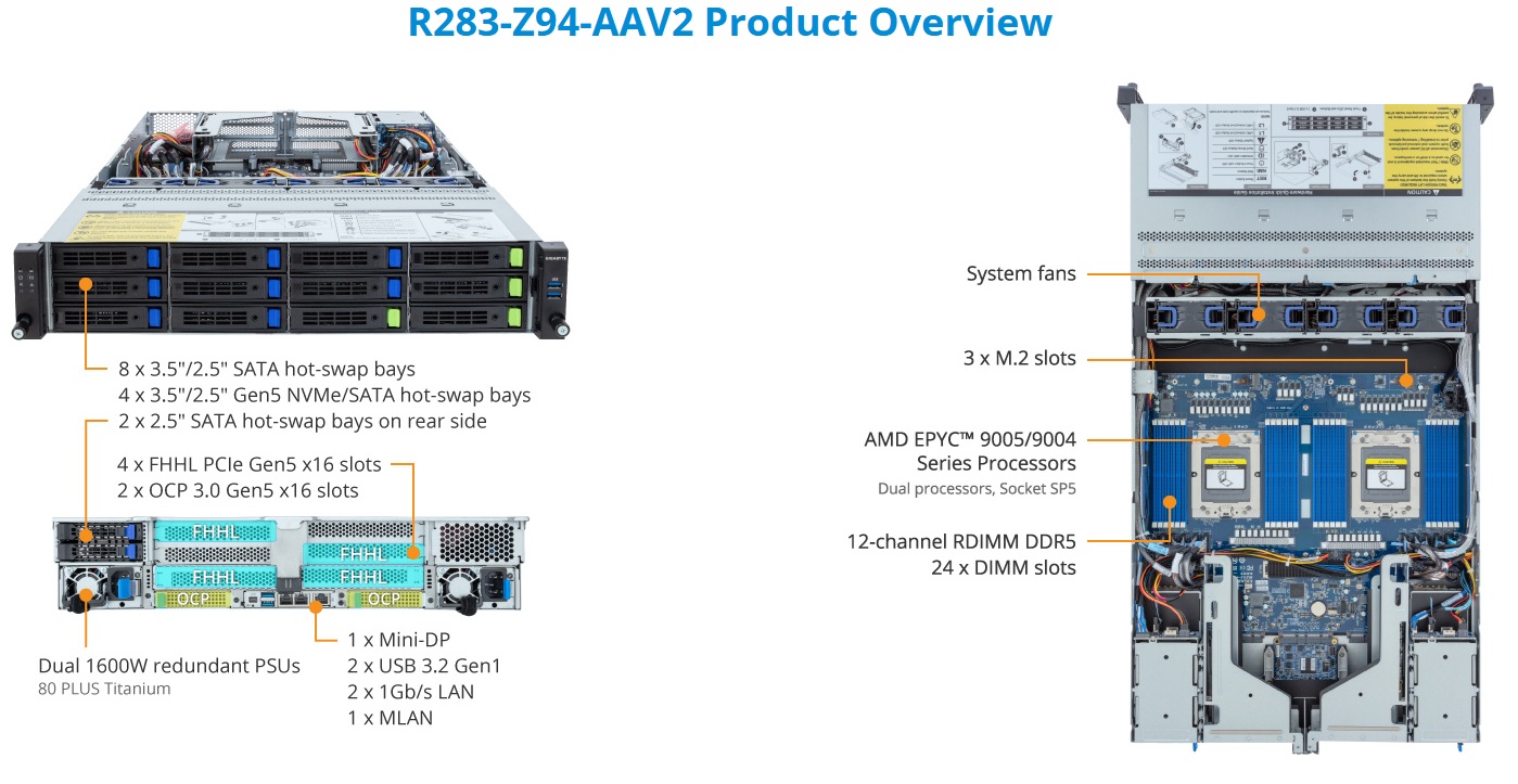 2U DP AMD EPYC™ 9004/5 up to 500W, 12*3,5"/2,5" H.S. SATA di cui 4*NVMe/SATA (SAS-4 supported)+ 2*2,5" SATA rear, 2*NVMe M.2 x4 - 24x DDR5 ECC-R - 4*PCIe x16 + 2 OCP - 2*1 Gb/s, 1 Management port - 1600W redundant Titanium Level - Standard Shipping