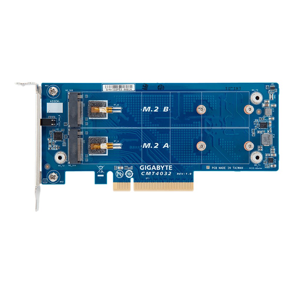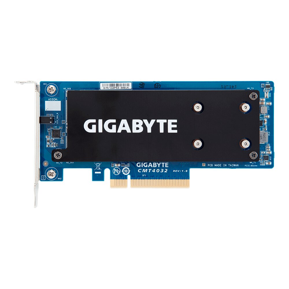 Descrizione: Gigabyte HBA PCIe x8 Gen3 Add-on card for up 2 M.2 NVMe SSD -LP (2280/22110)